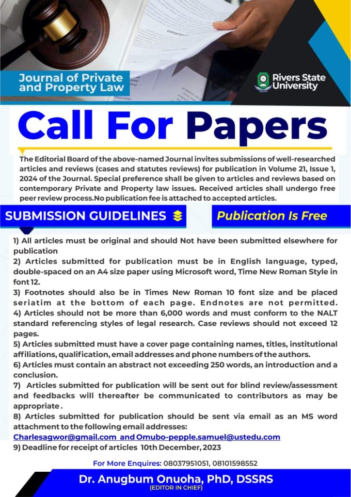 Author(s): M.A. EBIKAKA-NWANYANWU & SAM, IMO BENJAMIN| Volume 20 (1)Dec., 2023 Abstract The land registration process in Nigeria brushes on all factors involved in registering land transactions